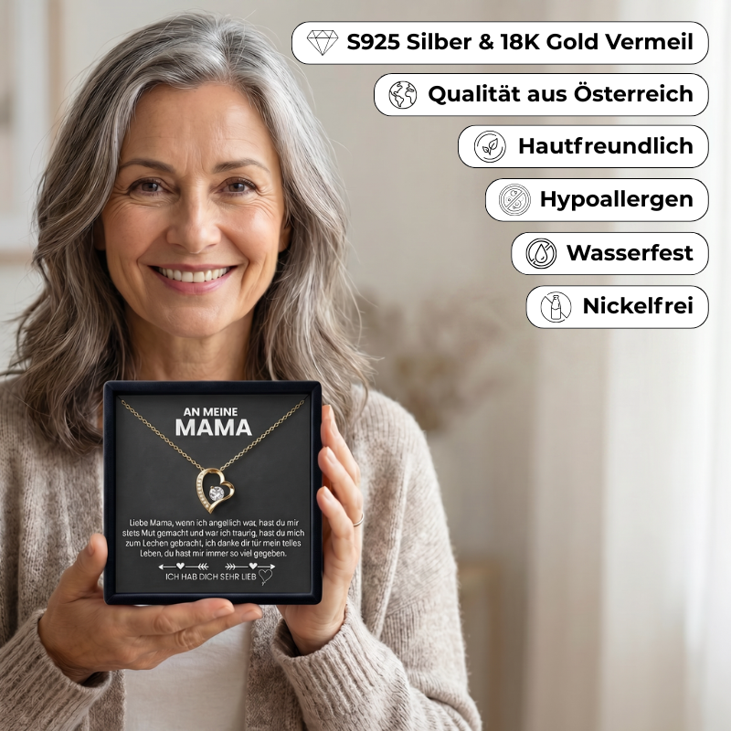 Wir wissen, wie wichtig es dir ist, dass deine Mama glücklich mit diesem Geschenk ist. Deshalb bieten wir dir mit unserer 60-Tage-Zufriedenheitsgarantie die Möglichkeit, dass sie den Schmuck in Ruhe testen kann– ohne Stress und ohne Risiko. Ist sie nicht zufrieden, erstatten wir dir deine Bestellung umgehend. So kannst du sie zu 100% risikofrei beschenken.
