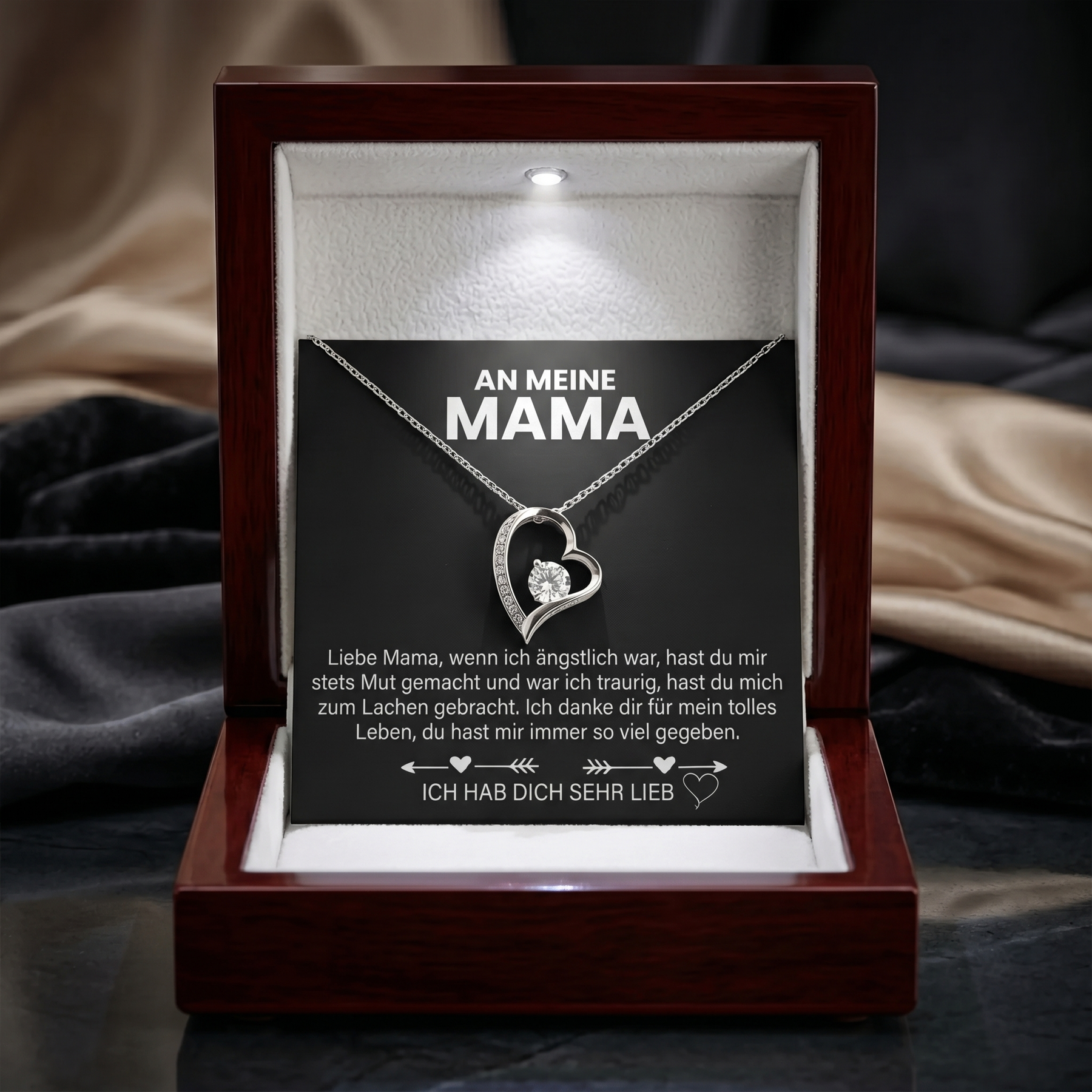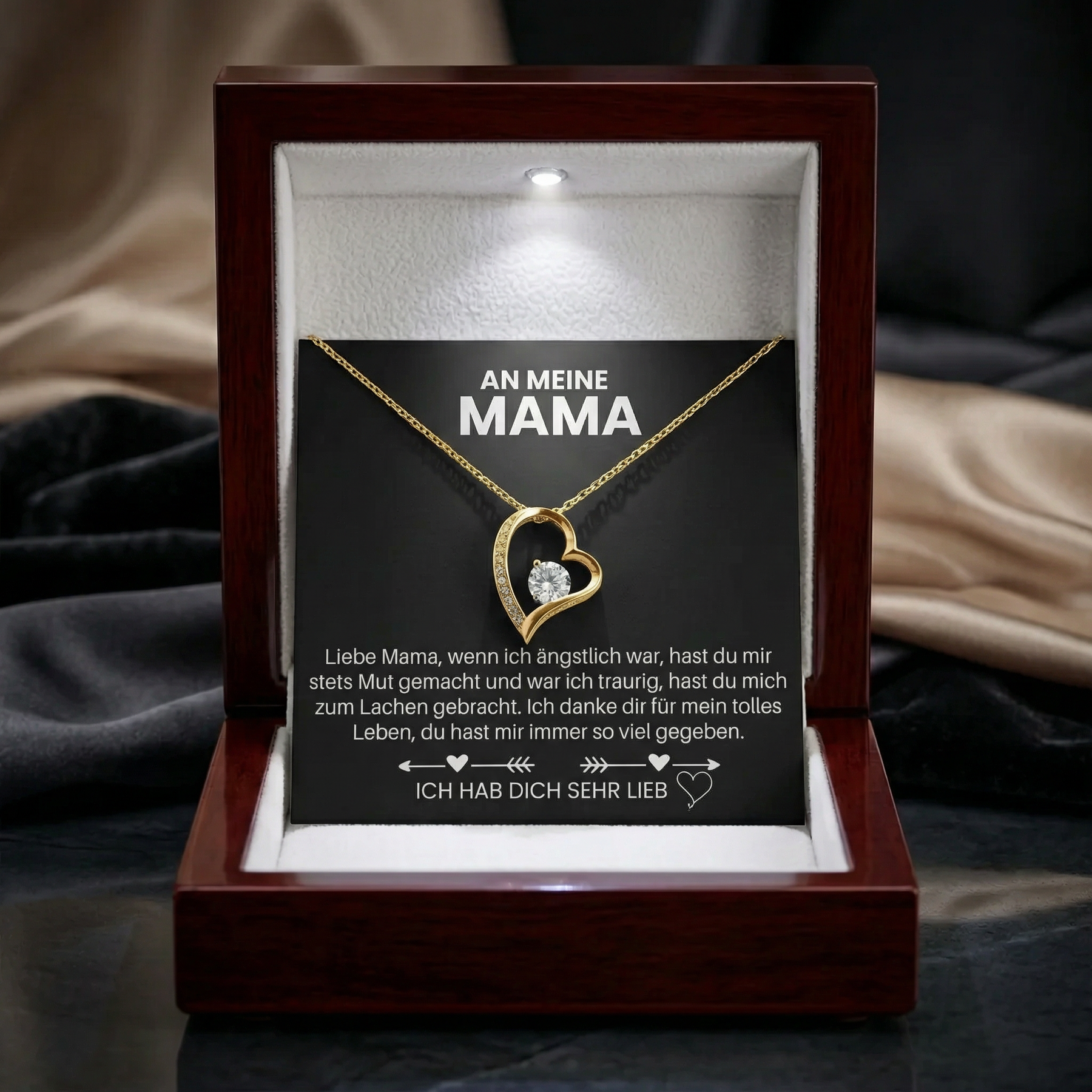Das liegt selbstverständlich an dir. Du kannst zwischen unserer Premium Schmuckbox und der Mahagoni Stil Luxusbox wählen. Die Mahagoni Stil Luxusbox beinhaltet zusätzlich ein LED Licht, welches sich von alleine einschaltet, wenn man die Box öffnet.